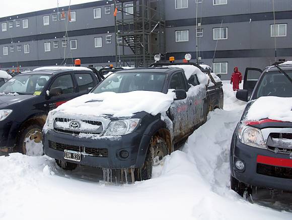 La companía minera que opera en las minas Veladero y Pascua-Lama realizó ayer una presentación abierta al público en el Teatro Municipal, frente a la plaza 25; donde diversos profesionales explicaron los detalles del "Operativo Invierno" que desde hace siete años pone en marcha en esta época del año para trabajar en alta cordillera. Con esa finalidad, la compañía mostró ayer un camión barrenieve y una moto de nieve que utiliza en el camino minero cuando hay temporales como el que se ve en las fotos de arriba. Las imágenes, proporcionadas por trabajadores de la mina, muestran un temporal que sucedió en los últimos días, donde las temperaturas llegaron a 30 grados bajo cero.