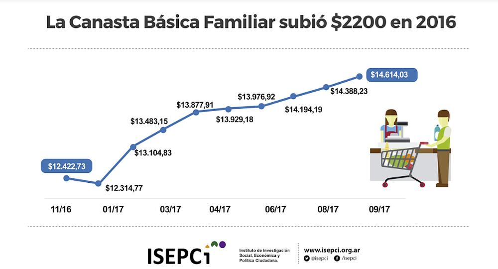 El Índice Barrial de Precios que mensualmente elabora el ISEPCi reflejó el mes pasado un aumento de 1,57% de las canastas básicas para una familia de dos adultos y dos niños. "Luego del amesetamiento que los precios de los alimentos que presentaron en los meses de mayo y junio (+0,71%), el espiral ascendente registrado en la primera parte del año parece retomar la curva en los meses de julio, agosto y septiembre (+4,56% en ese trimestre)", destacó el reporte al que accedió ámbito.com.