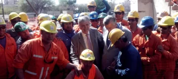 San Juan, 24 de octubre.- El ministro de Planificación Federal, Julio De Vido, junto al gobernador Gioja y directivos de la empresa constructora, visitaron esta mañana la obra del Teatro del Bicentenario, que tiene un esquema de financiamiento donde Provincia y Nación ponen por partes iguales fondos para la ejecución.