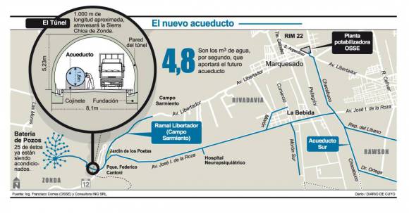 El Acueducto Gran Tulum será una megaobra que tomará el agua en los llamados esteros de Zonda, ubicado en el Parque Provincial Sarmiento, y que se extenderá a lo largo de unos 16 kilómetros hasta empalmar con la red existente. El acueducto entregará 5m3 por segundo, 2m3 más que lo que da actualmente la planta potabilizadora de Marquesado. Es tan importante esta obra, que de no concretarse, los habitantes del Gran San Juan correrían el riesgo de tener que racionar la distribución del agua en los próximos años.