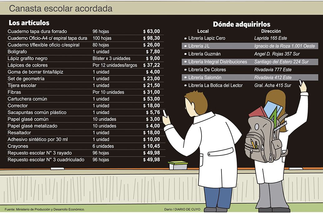 Cuando faltan 20 días para el inicio de las clases, previsto para el 6 de marzo, el Gobierno provincial firmó ayer un acuerdo con representantes de 7 librerías del Gran San Juan para que un listado de útiles escolares básicos tengan un precio que se mantendrá sin modificaciones hasta el 31 de marzo próximo.