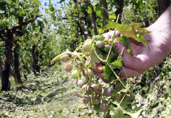 El granizo ‘borró de la producción‘ unas 800 hectáreas, lo que equivalen entre un 4 o 5% más de merma en la producción provincial‘, explicó Molina. Es un escenario complejo y de mucha incertidumbre porque la cosecha recién empieza, advierten los técnicos. Todos claman al Cielo por la disponibilidad de agua para riego durante enero y febrero, meses claves en crecimiento vegetativo de las plantas en ambos confines vitivinícolas. La zona Este de Mendoza -principalmente los departamentos de Rivadavia y Junín- también sufrieron los embates del clima en los últimos meses de 2011.