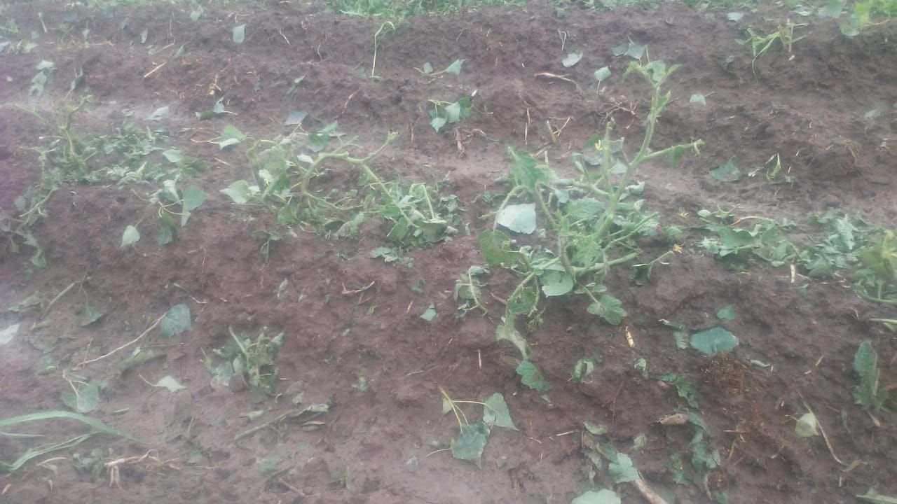 El fenómeno arrasó con plantaciones de tomate, pimientos y berenjenas en una finca de Santa Lucía Este, por ejemplo.