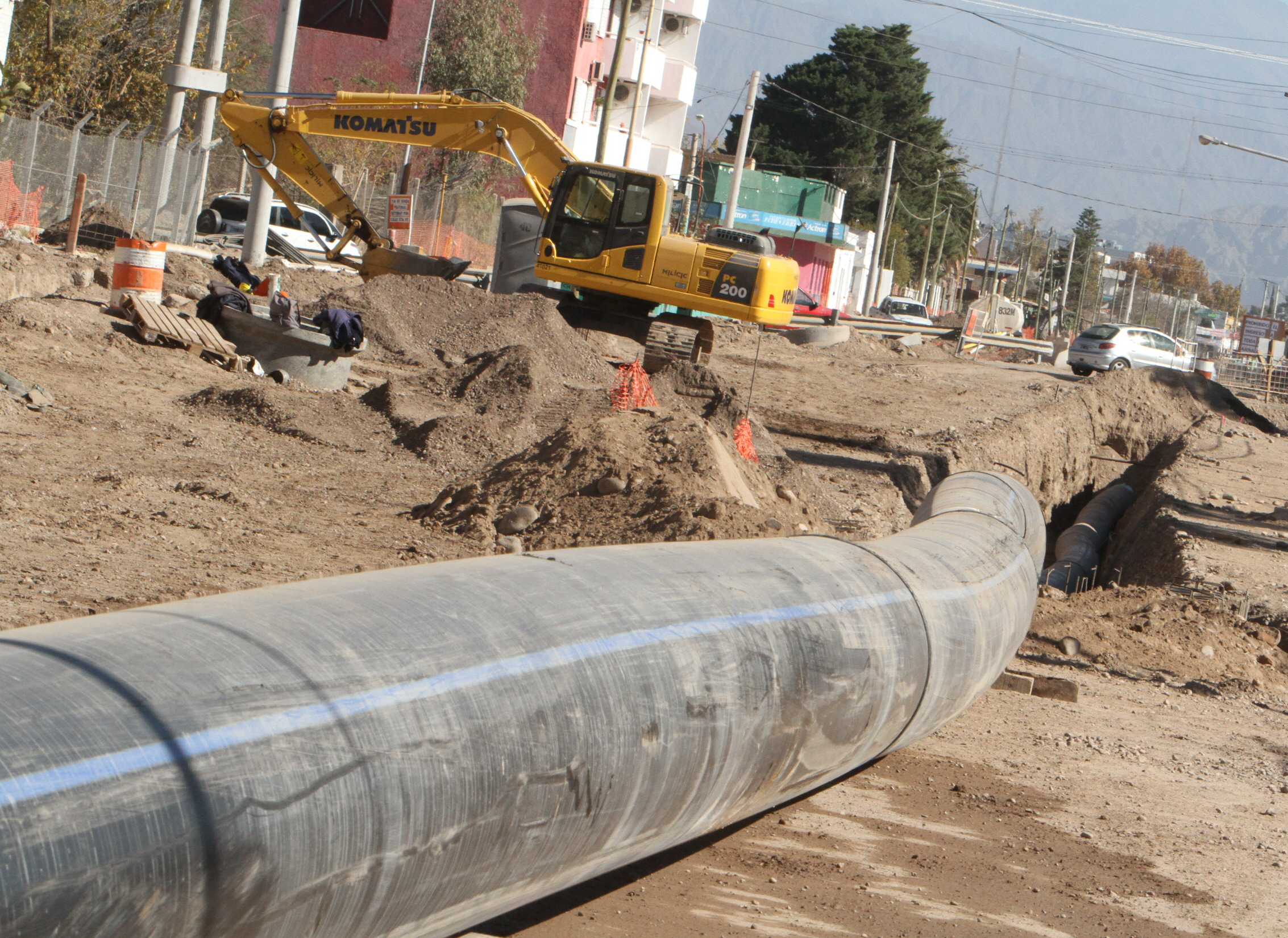 Una de las tareas que está llevando los mayores esfuerzos, según contó Magariños, es la colocación de una cañería de 600 milímetros, que reforzará el transporte de agua potable desde la planta de Marquezado al Gran San Juan.
