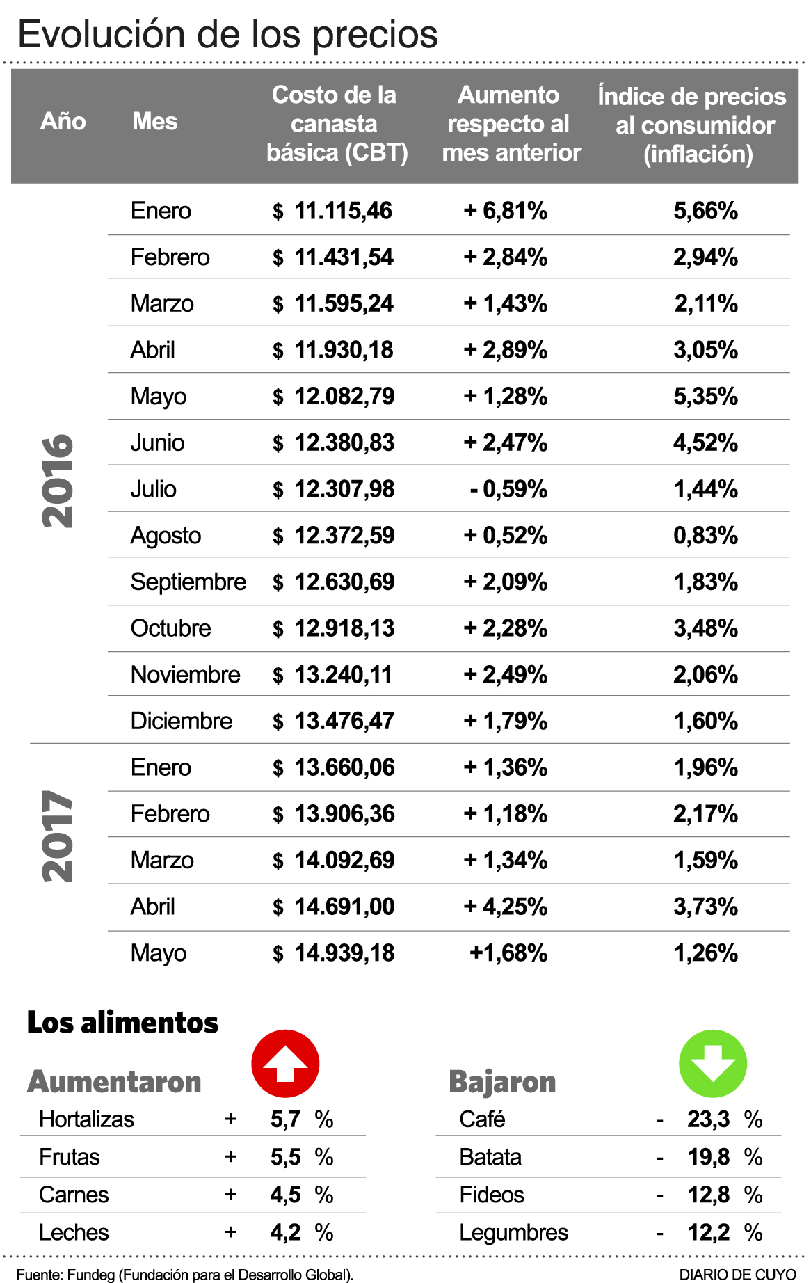 10,71 por ciento es la inflación acumulada en San Juan en los primeros cinco meses del 2017, respecto al año pasado. En el Indec es el 10,5%.