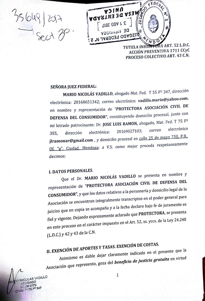 Desde la asociación manifestaron que el reclamo se basa en que la maniobra "es una infracción al art. 4 de la ley 24. 240, los art. 5 y 9 de la ley 22.802 y ley de Defensa de la Competencia".