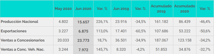 En tanto, en el acumulado del primer semestre, el sector automotor produjo 86.439 unidades, un volumen que se ubicó 46,4 por ciento por debajo de las 161.182 unidades que se fabricaron en el mismo período de 2019.