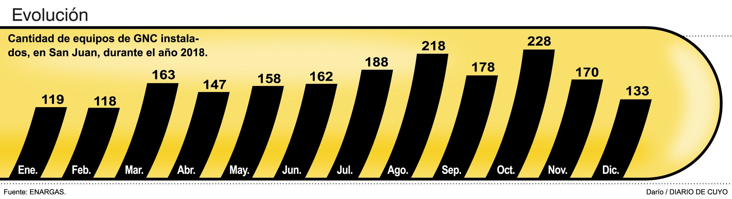 El primer mes del año arrancó con 122 conversiones de vehículos a GNC, según los datos del Ente Nacional Regulador del Gas (Enargas), que ubica a San Juan por encima de otras 12 provincias argentinas. El fluido tiene como ventaja, además del ahorro en el gasto, que es más ecológico ya que genera menos gases tóxicos (ver aparte).