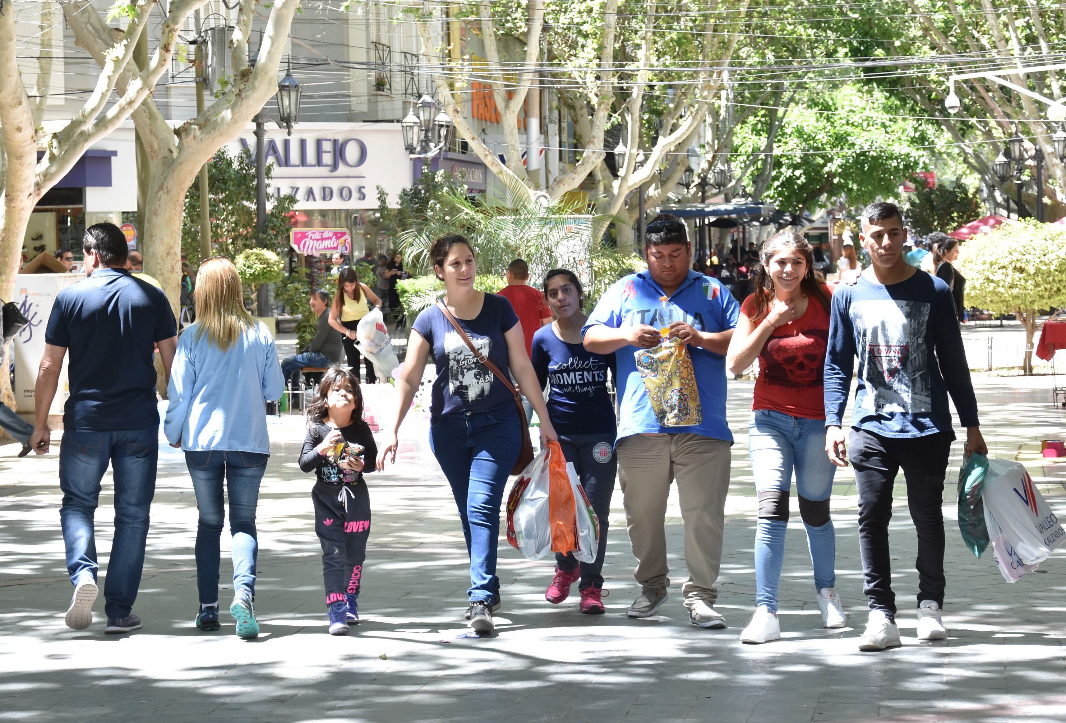 Colmada: el buen tiempo empujó ayer las salidas para comprar el regalo a mamá. Durante toda la jornada la peatonal capitalina estuvo repleta de público.