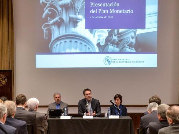 Sandleris habló antes ejecutivos de fondos comunes de inversión, compañías de seguros, bancos y Comisión Nacional de Valores. Acompañado nuevamente por Gustavo Cañonero y Verónica Rapoport, quienes lo secundan, buscó convalidar con estos datos la idea de que el dólar ya está lo suficientemente alto. Y defendió así la idea de una banda de flotación entre $34 y $44, dando a entender que a estos valores resulta mucho más sencillo mantener la estabilidad cambiaria.