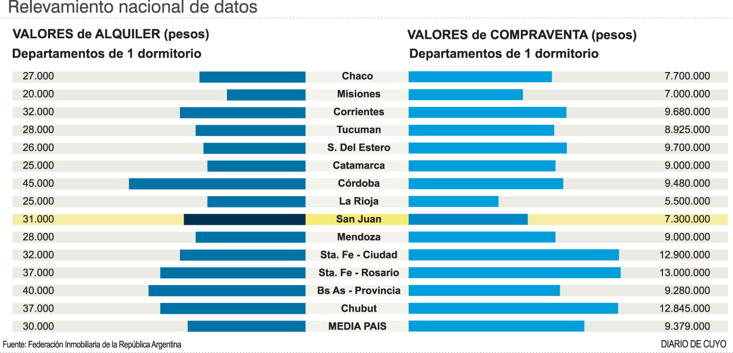 Esa casa, según un relevamiento de la Federación Inmobiliaria de la República Argentina (FIRA), está en el orden de los 62.000 pesos, un valor muy cercano a la media nacional, que es de 63.000 pesos.