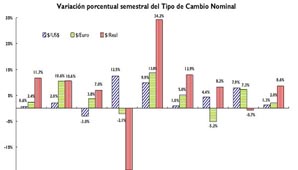 “Si se deflacta el ITCNM con el índice de precios minoristas utilizado en la metodología, el ITCRM muestra una depreciación de 2,8% durante febrero”, explica el informe de la autoridad monetaria, determinando una mejora de la competitividad cambiaria para los exportadores y mayores costos para los importadores.
