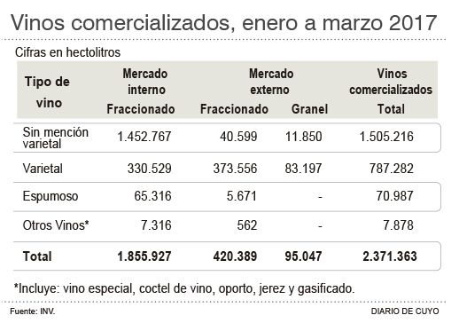 La comercialización de vinos en el mercado interno cayó un 11,7% en el primer trimestre del año, comparado con igual período del año anterior, según dio a conocer el Instituto Nacional de Vitivinicultura (INV). La cifra es casi el doble de la baja que había experimentado el sector en los primeros tres meses del 2016 comparado con el mismo lapso del 2015, cuando el descenso fue del 6,56%.
