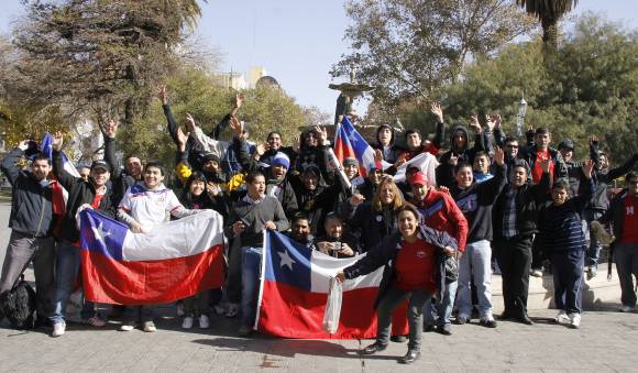 Ayer sábado ya habían arribado a San Juan colectivos con hinchas chilenos, que aprovecharon el día para recorrer la ciudad, conocer lugares turísticos y hacer comprar en el comercio local. Identificarlos resultó muy fácil, ya que la mayoría de ellos llevaba algún elemento relacionado con los colores de su bandera nacional: gorros, bufandas, buzos y hasta algún ‘trapo‘ blanco, rojo y azul para sentar presencia en tierra sanjuanina.