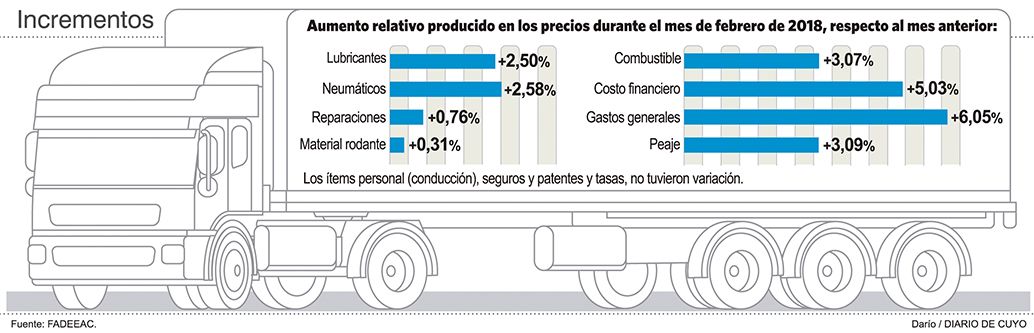 De acuerdo a los registros de FADEEAC, el aumento de los costos el año pasado fue del 23,22%, que si bien es inferior a los números del 2016, cuando el incremento fue del 36,8%, siguen una espiral ascendente, que se ha mantenido en los dos primeros meses del 2018.