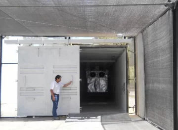 Las plantas habilitadas son una que está en la firma Expofrut (ver foto) y la otra en el frigorífico de Caucete. En tanto que hay otras 4 que entre este lunes y martes -aseguraron desde Senasa- tendrán la certificación en sus escritorios para que gocen de luz verde. A eso se le suma otra planta del tipo móvil que está en el departamento de Ullum, una más en 25 de mayo, otra en Caucete y la restante, construida con fondos provinciales, que se ubica en el parque industrial de Albardón. Hay una en construcción, pero que descartan que esté lista esta campaña. De todos modos, la alta demanda que tendrán estas plantas generará un “cuello de botella” debido a que se pueden tratar por vez apenas unos 26 pallets y la tarea demora un poco más de 3 horas, explicaron