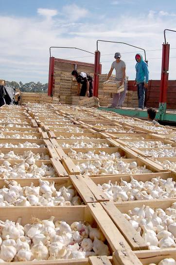 Alfredo Figueroa recordó que el primer ajo de la temporada, el morado, se destina al mercado interno y a la exportación a México y Brasil. "Los argentinos consumen muy poco, apenas el 20% de la producción. Exportamos el 80%, por eso es conveniente tener todos los mercados posibles", reflexionó el productor.