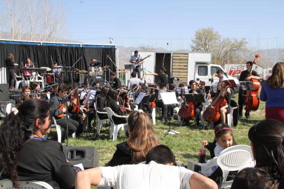 Los chicos de la orquesta juvenil del colegio Froilán Ferrero, de Pocito, realizaron su presentación en el mediodía de ayer, con interpretaciones de canciones de películas como Madagascar y Piratas del Caribe. Los acompañó Germán Flores en el bajo, Matías Araya en saxofón y Facundo Paz en percusión.