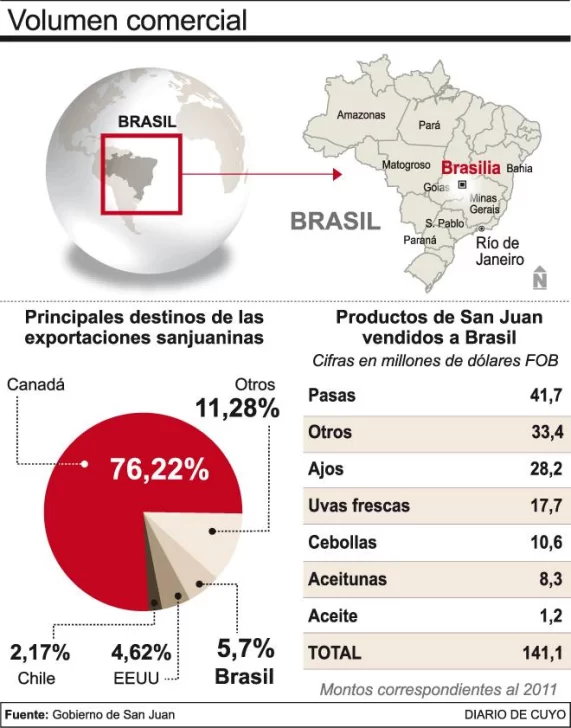 En la bolsa están unos 40 productos claves para las economías regionales del país; y en San Juan pone contra las cuerdas a pasas de uva, aceitunas y aceite de oliva, principalmente. Sólo en 2011, la provincia exportó al mercado de Brasil 141.080.398 de dólares (ver infografía).