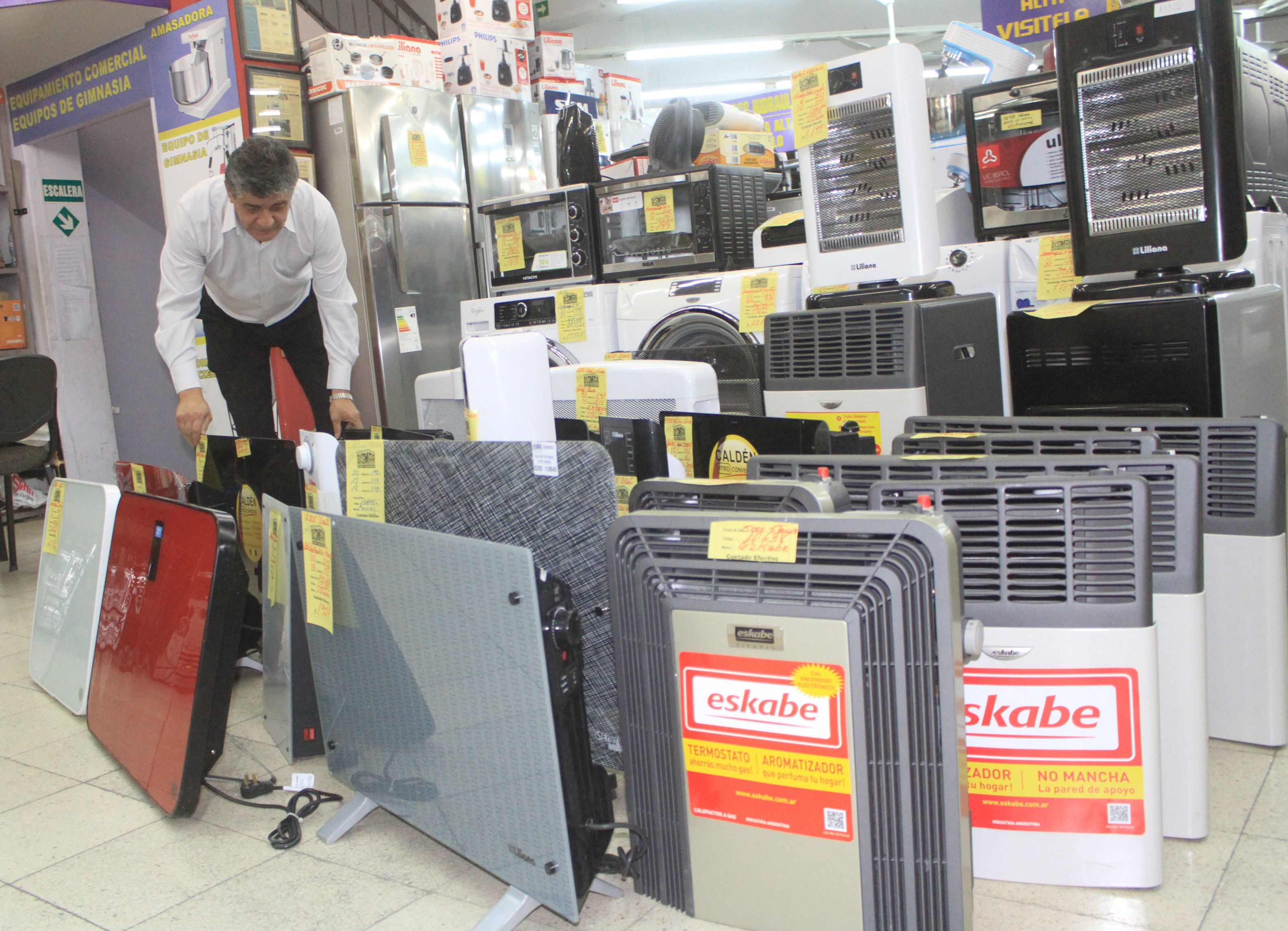 Esta casa, por ejemplo, ofrece un calefactor Emege de 3.000 calorías en 2.399 pesos por pago de contado o una estufa Volcan, de 2.500 calorías, a 1.999 pesos. Si de artículos que no requieren instalación se trata, la opciones pueden ser una pantalla Peabody de vitrocerámica, de 1.500 watts, a 2.399 pesos.