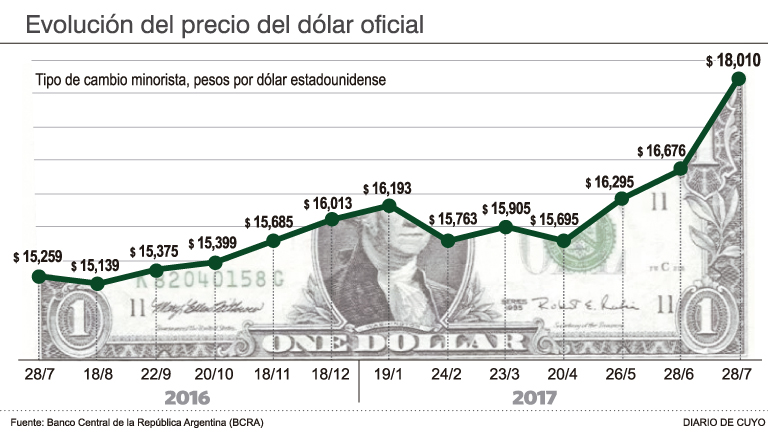 El dólar cerró la semana con una fuerte suba y quebró la barrera de los 18 pesos, lo que hace temer a los economistas que la situación impactará en los precios y provocará una escalada inflacionaria y, por ende, tendrá un efecto negativo en el consumo de la gente, que ya viene con problemas. Entre las razones para la actual situación mencionan que con el blanqueo de capitales y la toma de créditos que impulsó el Gobierno nacional, la moneda norteamericana venía atrasada y que lo que se está produciendo ahora es una actualización de los valores. Pero el problema es que también va a motivar una depreciación de la moneda y una reducción del poder adquisitivo de los salarios, que terminará incidiendo en la toma de créditos tanto para la producción como para el rubro inmobiliario.