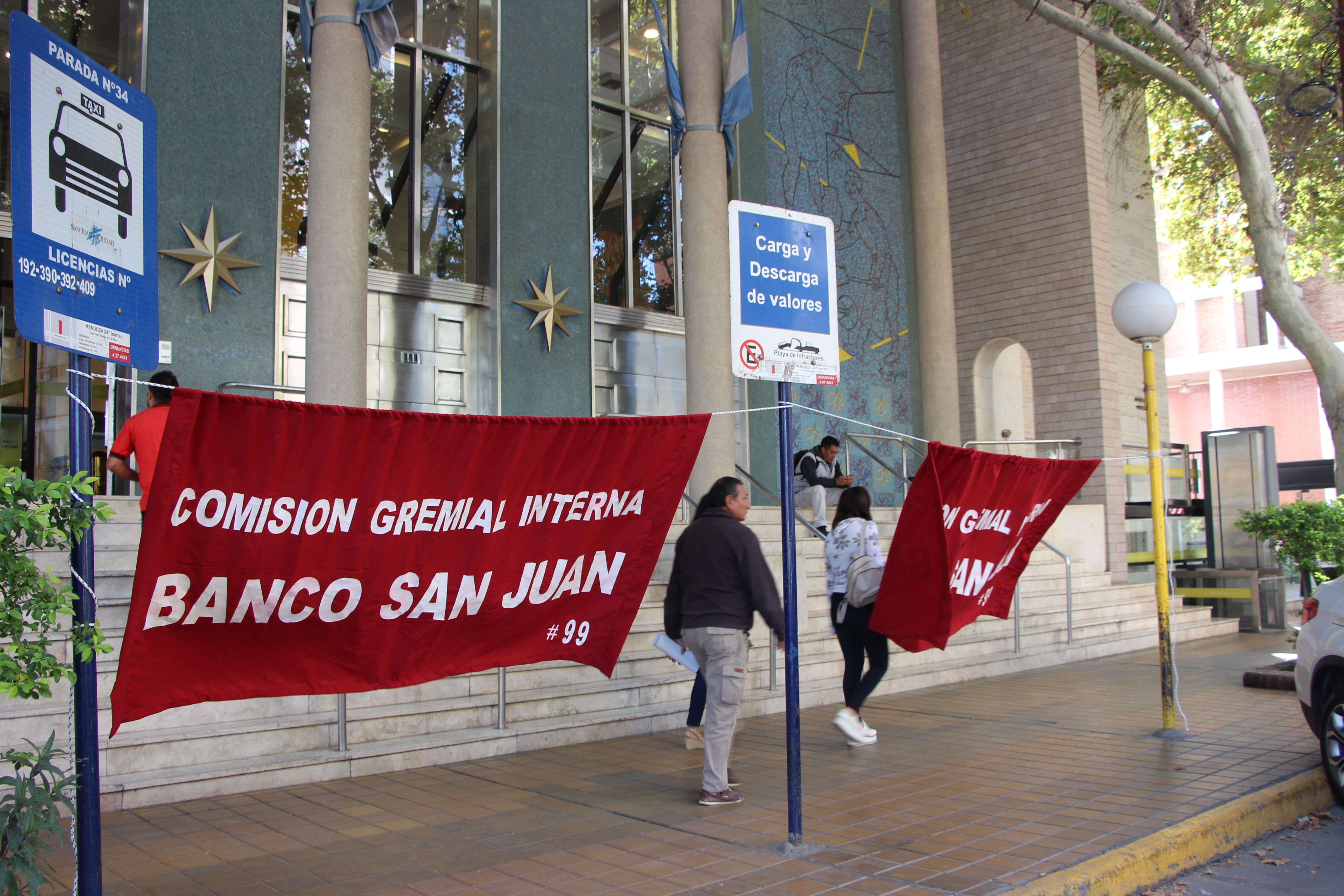 Como viene sucediendo en las últimas semanas, los miembros de La Bancaria implementaron un paro en todas las entidades para reclamar por la falta de acuerdo en torno a las paritarias. En San Juan la adhesión fue total, sin embargo, no se vio largas filas en los cajeros.
