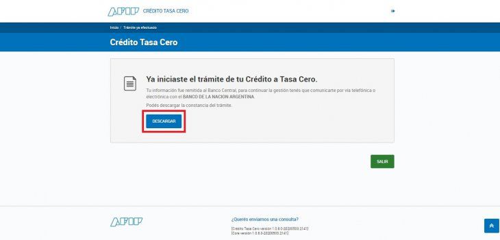 -Una vez que toda la información fue ingresada, la AFIP emitirá un Certificado de Tramitación y remitirá los datos al Banco Central para que los distribuya entre los bancos seleccionados por los monotributistas y autónomos. Cada banco se contactará con quienes iniciaron el procedimiento para avanzar en la tramitación del Crédito a Tasa Cero.