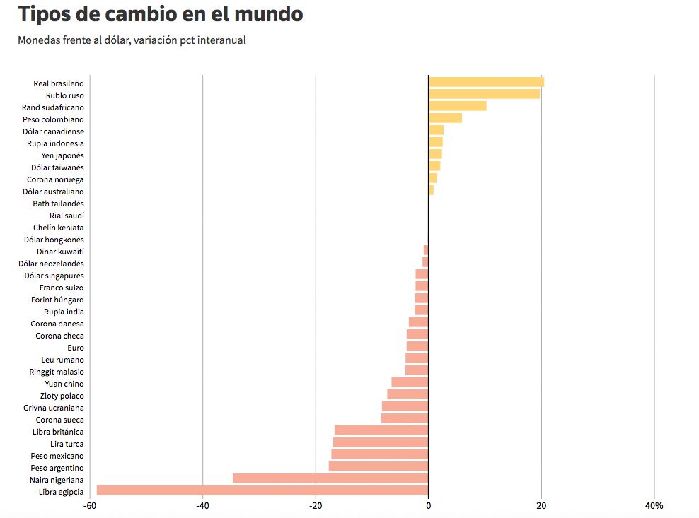 En tanto, en el mercado mayorista, la divisa norteamericana terminó con un alza de 57 centavos a $ 23,26 (2,5%), en medio de una marcada volatilidad en el recorrido, que fue consecuencia de la intensa actividad oficial. Así, en el año, la moneda registra una suba de 24,7%, el más alto de las monedas de la región.