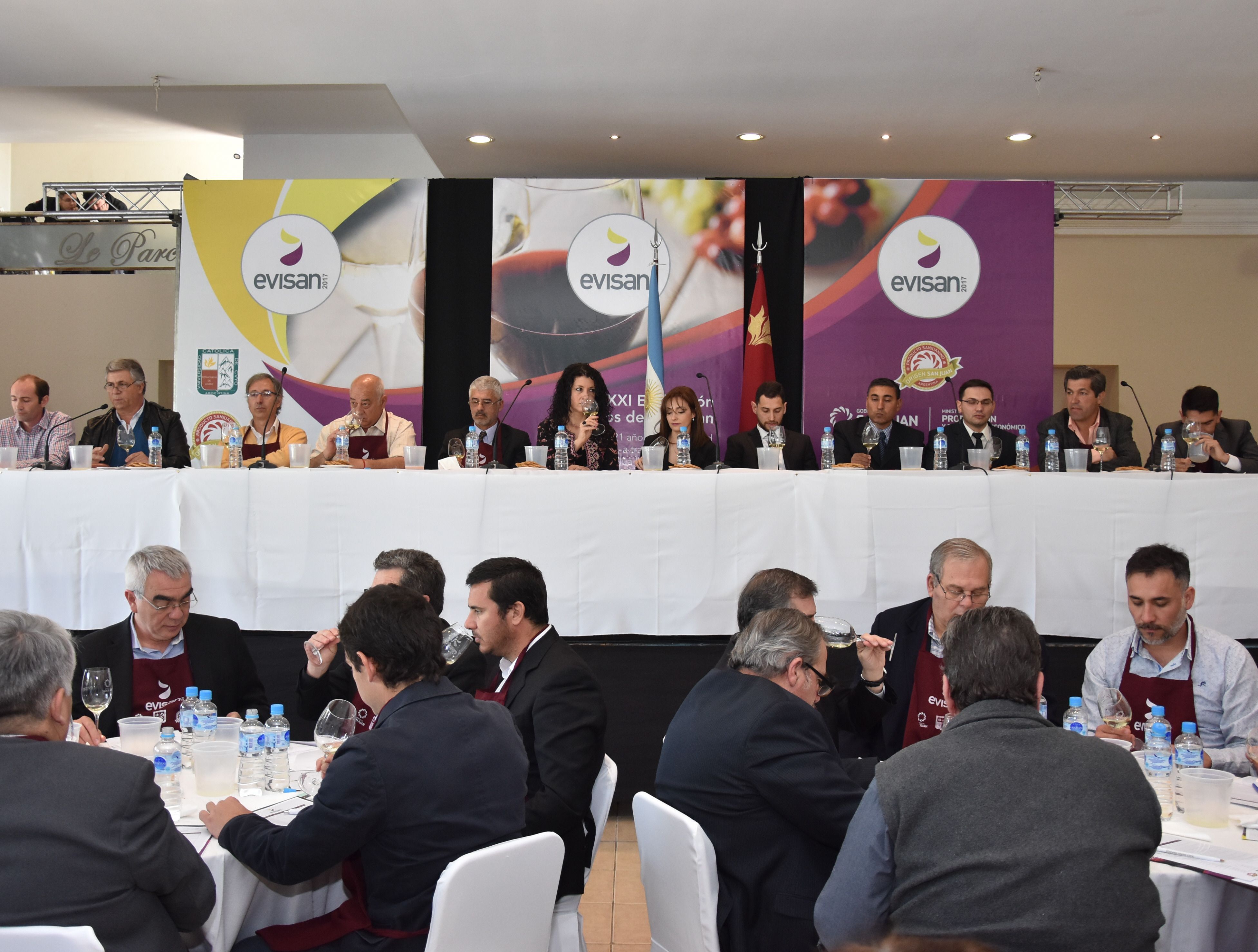 Junto con la mejora de la calidad de los vinos, el principal evento que evalúa la cosecha sanjuanina recobró también ayer la relevancia de años pasados, al volver a una ceremonia de lujo organizada por la Universidad Católica de Cuyo y el Gobierno de San Juan. En el salón Le Parc, con coquetas mesas vestidas y un despliegue gastronómico de comidas típicas realizado por los estudiantes universitarios, más de un centenar de personas -entre funcionarios, enólogos, enófilos e invitados- además de escuchar las conclusiones, vistieron el delantal y disfrutaron por un par de horas de la degustación dirigida de las 10 mejores muestras del año (ver recuadro). Evisan sólo da conclusiones en forma general, sin distinguir marca o bodega, tarea que queda para la Cata de Vinos, el concurso que se realiza el mes próximo. María Laura Serafino, coordinadora general, informó que la media de la elaboración 2017 encuadró en la categoría de "Muy Buenos", destacándose los matices intensos de los colores, el equilibrio y la armonía. Este año del total de muestras evaluadas el 70 % fueron vinos tintos, el 28.87 % vinos blancos y el 1.03 % vinos rosados. Este año San Juan cosechó 550.124.000 kilos de uva, de los cuales tuvo una merma del 20% promedio en las variedades para vinificar, siendo que la cosecha anterior había sido la más baja en 50 años. Incluso en variedades tintas en algunos casos superó el 40%, todo por causa de las heladas tardías (en la primavera) que afectaron en el 2016 a toda la provincia. Esas heladas fueron más intensas en Caucete, 25 de Mayo, Sarmiento y 9 de Julio, donde se concentra el mayor porcentaje de producción de San Juan. Pero la naturaleza benefició al mismo tiempo la calidad, porque los rendimientos bajos y la cosecha temprana (se adelantó dos o tres semanas) acortaron la temporada de vendimia, lo que produjo sanidad muy buena y vinos de mejor calidad, sanos y más concentrados. El informe destaca sorpresas en muestras de vinos básicos o genéricos, por lo general blancos. También sobresalieron todos los vinos elaborados con uvas provenientes del Valle de Pedernal y muestras provenientes del Valle de Calingasta. En variedades blancas resaltó el Chardonnay, Pinot Gris y Sauvignon Blanc. En tintos, el Malbec, Syrah, Cabernet Franc y Cabernet Sauvignon.