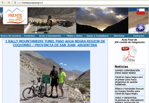 ‘’Se llama Rally de Mountain bike Túnel Agua Negra y fue organizado como un proyecto de integración deportiva y para promocionar la realización del túnel’’, explicó ayer desde Chile, Jaime Pozo; el presidente de la Corporación Paso Agua Negra (Corpan), entidad privada creada para lograr el fortalecimiento de la integración entre las regiones de Coquimbo y San Juan. Agregó que la entidad recibió fondos del Gobierno regional -16 millones de pesos chilenos (unos 161.000 pesos argentinos) para realizar la megabicicleteada binacional y dos proyectos más relacionados con el túnel (ver recuadro).