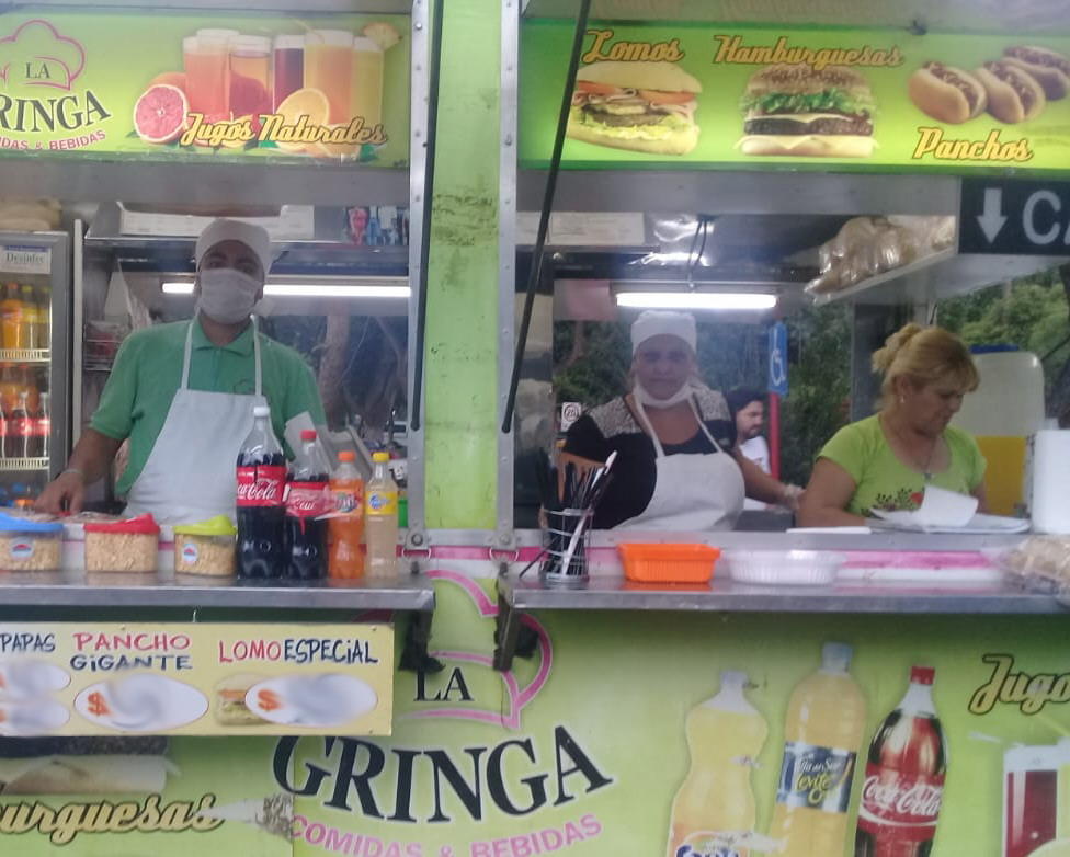 A Isabel Patricia Ochoa, que tiene su carro los domingos en el Parque de Mayo, todos la conocen como la "Gringa" e incluso ése es el nombre de su negocio. Empezó hace unos 18 años vendiendo ropa en las ferias de la zona, hasta que comenzó a vender panchos y nunca más paró. Al punto que ahora preside la Asociación de Pancheros Unidos Afines. "Tenía siete hijos a los que había que mantener y por eso me dediqué a esta actividad", cuenta. "Empezamos de abajo, casi sin nada, hasta que pude armar mi negocio", agrega. Ahora trabaja desde las 16 hasta la 1 de la mañana.