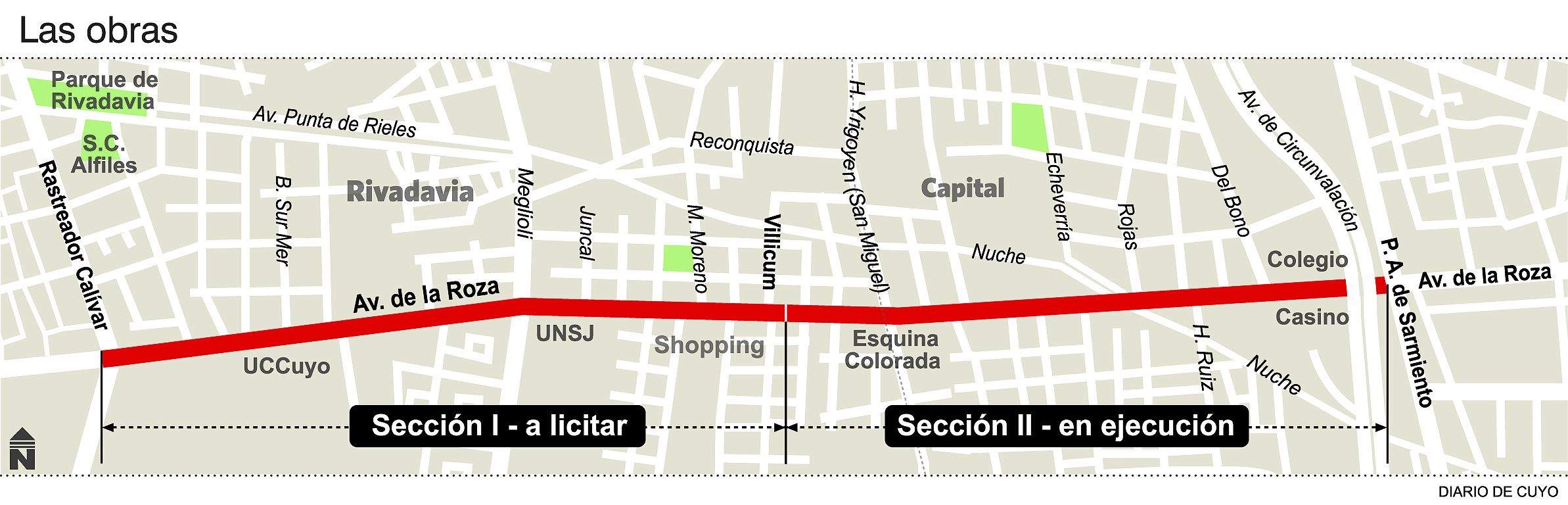 La primera etapa, desde Paula Albarracín de Sarmiento hasta la calle Villicum, con una extensión de 1.600 metros, tuvo un presupuesto oficial de 227 millones de pesos. Y la etapa que se viene, de unos 2.000 metros, irá desde Villicum hasta Rastreador Calívar. Pero en Vialidad Provincial no se animan a dar una cifra de cuánto va a costar. Es que si se quedan cortos con los números y no se presentan interesados, se corre el riesgo de tener que declarar desierto el llamado y volver a hacer todo el proceso de nuevo, con lo cual se demorará aún más el procedimiento. Todos los recursos son provinciales y, según dijo Magariños, la empresa santafesina Milicic que está haciendo los trabajos en la actualidad no tiene impedimentos para para presentarse en el nuevo llamado.