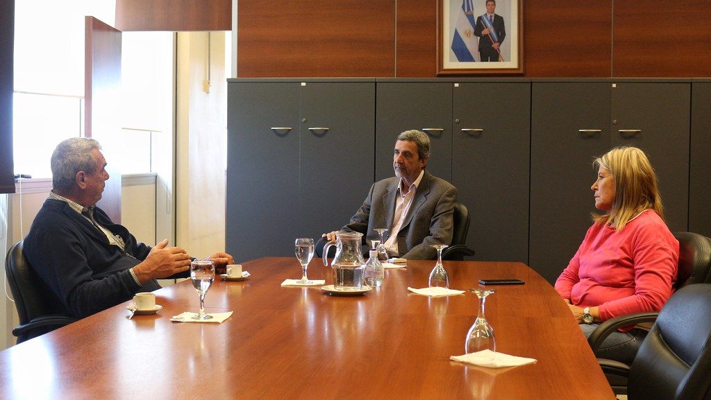 José Maldonado, de Uprocam (a la izq.), en la reunión con el ministro de Minería, Astudillo, y la subsecretaria de Coordinación, Patricia Guarneri.