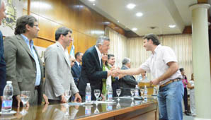 El gobernador Gioja encabezó el acto Casa de Gobierno, siendo este el primero que tiene en el lugar tras su regreso a la provincia. Notablemente emocionado, Gioja dijo que “me siento muy feliz en entregar ayuda a productores y dar una mano a la producción. El último acto que tuve en esta sala antes del accidente fue relacionado a la producción. Estamos muy felices y aclaramos que vamos a seguir trabajando para dar las respuestas que el sector necesita”.