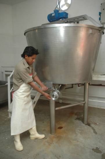 Pablo Blanco, presidente de la cooperativa La Rural, dijo que "se están haciendo una serie de pruebas para poner a punto una ensachetadora -envasa la leche en sachet- que compramos recientemente, que por ahora le estamos ajustando algunas cosas para que no se pierda leche en el proceso".