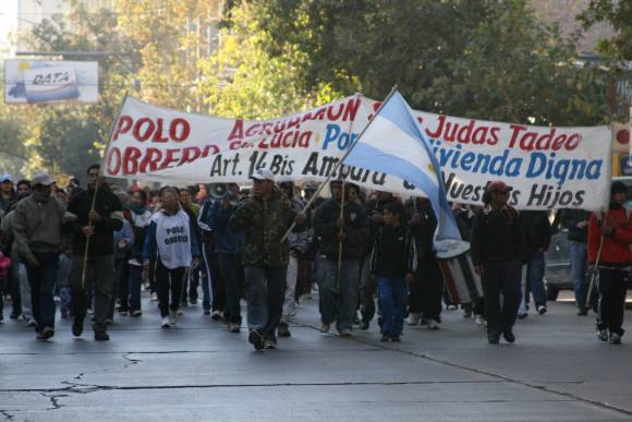Unas 100 personas de la agrupación Polo Obrero se manifestaron ayer en la mañana por las calles del centro sanjuanino.