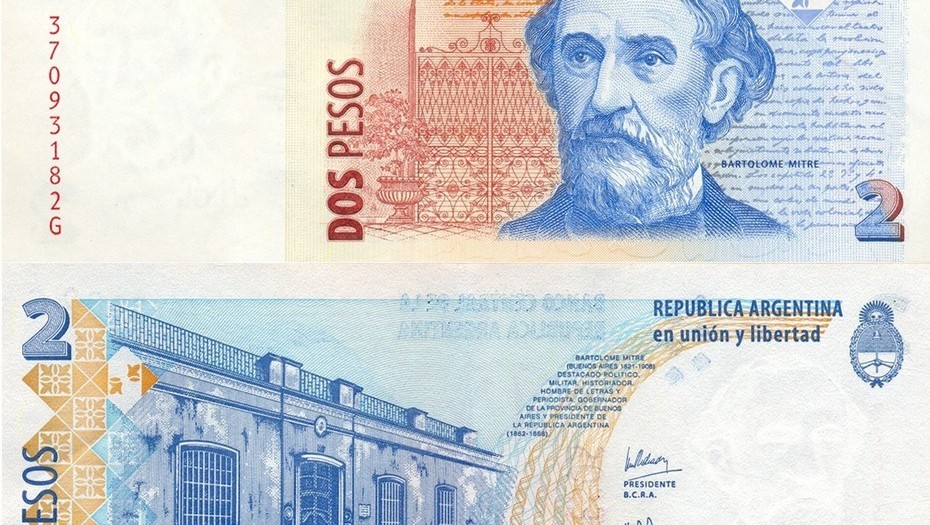 Según los registros del BCRA, en la economía argentina todavía circulan 414 millones de unidades de billetes de 2 pesos, de color azul, que muestra la imagen de Bartolomé Mitre en su reverso y que se emitió por primera vez en 1992.