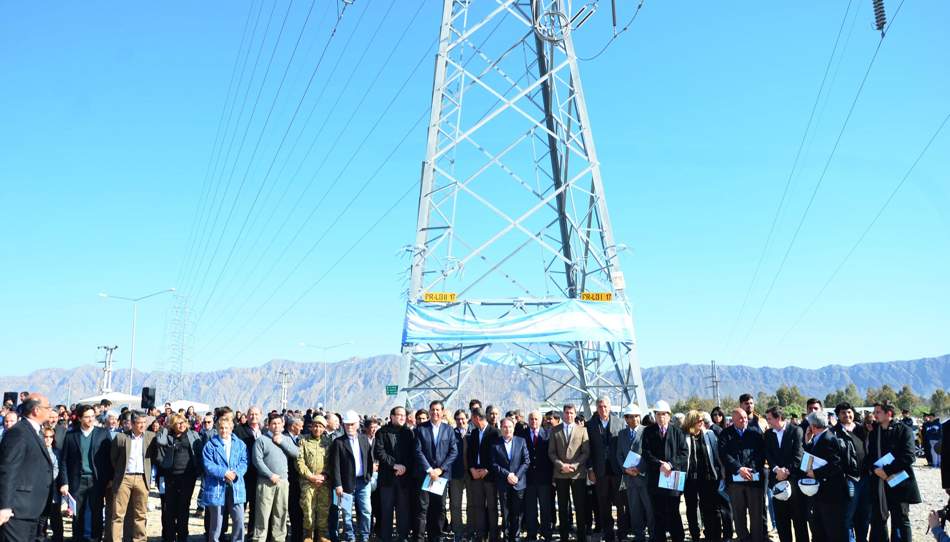 ‘’Lo que ha concluido es uno de los desarrollos energéticos más importantes que tiene el país’’, dijo el gobernador Sergio Uñac que fue quien encabezó el corte de cintas en forma simbólica en una torre eléctrica de cuatro ternas -la segunda que hay en Argentina de ese tipo que permite llevar en una sola traza cuatro líneas (foto)- que domina la ruta del Sol en las inmediaciones del acceso al camping El Pinar, en Rivadavia. Junto a el estuvieron los intendentes de los departamentos donde se construyeron las obras, además de los directivos de las distribuidoras y del sector eléctrico en general.