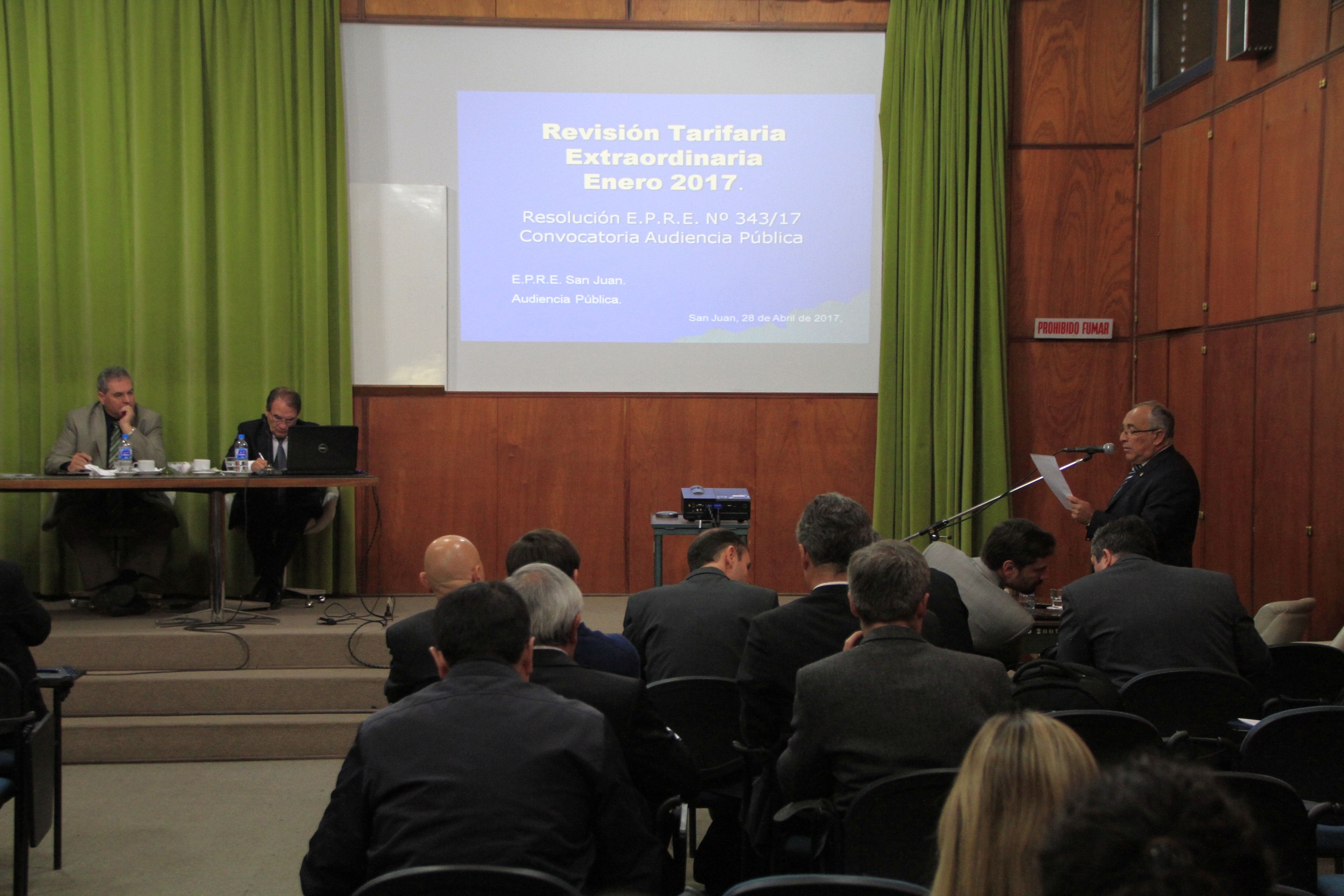 Este viernes por la mañana, en el INPRES, lugar habitual donde se realizan las audiencias públicas para discutir la tarifa de la luz, s ellevó adelante un nuevo encuentro entre representantes del Ente Provincial Regulador de la Electricidad y la distribuidora Energía San Juan para definir de cuánto será el próximo aumento. Tambien fueron parte personas vinculadas a ONG’s y cámaras empresarias.