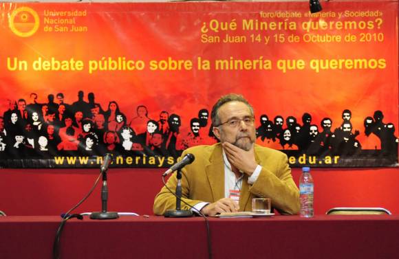 "El agua-delito, como yo la denomino, es la irracional ocupación del recurso que hacen algunas actividades productivas, como la minería, que no son legítimas y que ponen en riesgo la vida humana. En Europa es un crimen contaminar el agua". La frase corresponde a Pedro Arrojo Agudo. Este español, que es doctor en Ciencias Físicas e ideólogo de la "Nueva Cultura del Agua", tuvo la responsabilidad de dar la última conferencia del foro "Minería y Sociedad", que culminó ayer pasadas las 21 horas en la sede del Rectorado de la UNSJ. El experto europeo, centró su exposición en las consecuencias que genera la minería a cielo abierto sobre las cuencas hídricas y el desprecio de los países por el "precio" del agua.