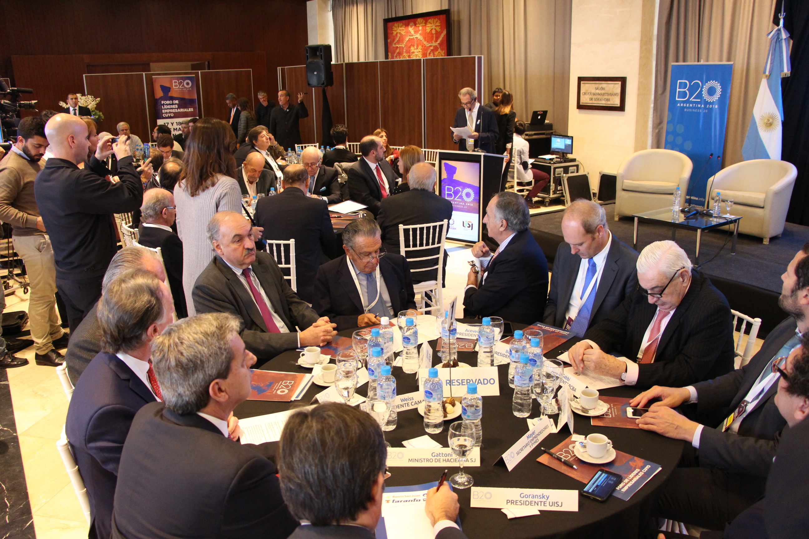 El panel estuvo compuesto por Daniel Funes de Rioja, chair del B20 Argentina; Miguel Acevedo, presidente de la Unión Industrial Argentina; Gustavo Weiss, presidente de la Cámara Argentina de la Construcción; Javier Bolzico, presidente de la Asociación de Bancos Argentinos; Adelmo Gabbi, presidente de la Bolsa de Comercio de Buenos Aires; Eduardo Eurnekian, vicepresidente de la Cámara Argentina de Comercio y Servicios y Daniel Pelegrina, presidente de la Sociedad Rural Argentina.