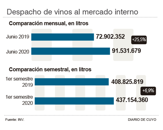 El informe hace referencia a que "para los doce meses cerrados en mayo de este año se puede observar un importante crecimiento de los despachos de vino desde las bodegas (4,7%) y un crecimiento de los volúmenes de exportación, en especial de vino granel de bajo precio (24,3%), lo que generó un aumento del volumen total, según cifras oficiales del 9,9% en relación al mismo periodo del año anterior. Esta situación ya se había revertido en el 2019 gracias a los fuertes envíos de vinos a granel". Pero, como contrapartida, la entidad revela que "en cuanto a los precios promedio medidos en moneda constante, se advierte una caída muy importante. En el mercado interno, medido después de los sustanciales descuentos que se realizan como promoción, el precio promedio ha disminuido en moneda constante casi un 15% en relación a un año atrás".