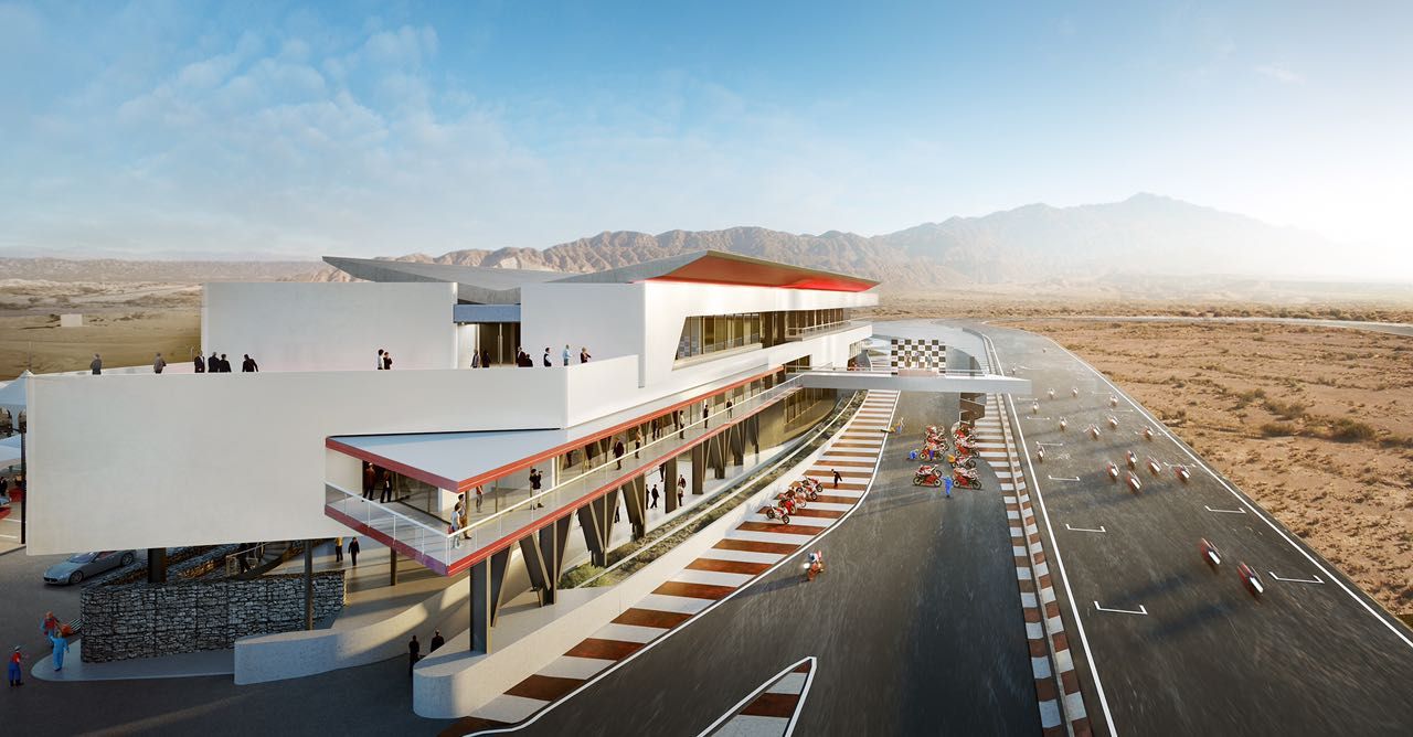El complejo deportivo tendrá acceso principal desde la ruta 40 y accesos secundarios desde calle lateral, lindante con el Parque Tecno Industrial Albardón. Tendrá dos ingresos a hall central y paso de distribución, con acceso a distintas áreas funcionales inherentes a la organización de las competencias automovilísticas. En planta baja; se integran los espacios destinados a Sala de Administración, Sala de Conferencia de Pilotos y Sala de Prensa, como espacios principales, con instalaciones complementarias destinadas a depósitos, sanitarios y oficinas. En el primer piso sobre planta baja se accede a Terraza de Podio y Sala de Control de Seguridad de Competencias; en segundo piso se ubica Sala de Cronometrajes; en tercer piso se ubica Sala para Dirección de Competencias (VIP) y en cuarto piso o azotea accesibles, está destinada a las instalaciones de Comunicación.