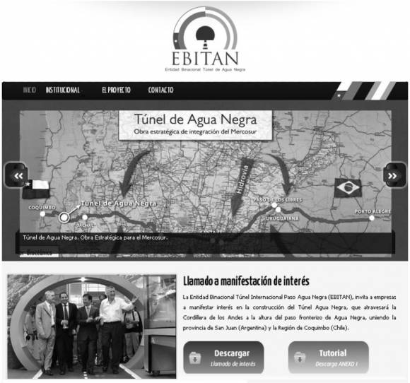 Gioja informó además que la presentación oficial de esta página será el próximo 11 de julio en La Serena, Chile, por el ser el país que ejerce actualmente la Presidencia Pro Tempore del Ente Binacional Túnel de Agua Negra (Ebitan), el organismo conformado entre los gobiernos de Chile y Argentina para avanzar en las obras relacionadas con la construcción del Túnel Internacional. La convocatoria internacional fue publicada en diarios argentinos y chilenos el pasado 25 y 26 de junio, y las empresas interesadas debían esperar hasta que se active la página para inscribirse allí e informarse respecto de la obra, hasta el próximo 11 de octubre a las 14 horas. Las empresas interesadas en su construcción deben tener antecedentes en construcción de túneles y presentar la forma de financiamiento de la obra. Tras el cierre de la primera etapa en octubre, luego se convocará a la licitación para la cual aún no hay fechas. En la página web que se estrenó ayer se muestra la historia de Agua Negra, cómo está compuesta la organización de Ebitan y los datos del proyecto, un túnel de dos vías, de casi 14 km y cuyo costo se estima en más de U$S1.000 millones. A las empresas interesadas en registrarse se les exigen además de sus datos, una certificación de la embajada o consulado de su país de origen.