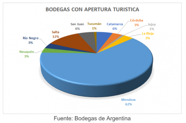La Corporación Vitivinícola Argentina presentó la Asociación Ad Hoc de Turismo del Vino, destinada a desarrollar la industria y la cultura del vino en todo el país, asociadas a los desarrollos turísticos. Según el informe elaborado por Bodegas de Argentina, en el país existen más de 200 bodegas con apertura turística, de las cuales el 62% aproximadamente se encuentra en Mendoza. Le siguen en importancia, Salta (12%) y San Juan y Catamarca con el 6% cada una.