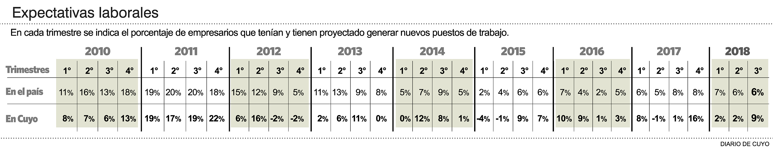 La encuesta señala que en Cuyo, incluida San Juan, la Expectativa Neta de Empleo (ENE) es de 9%, mientras que en el país ese indicador es del 6%.