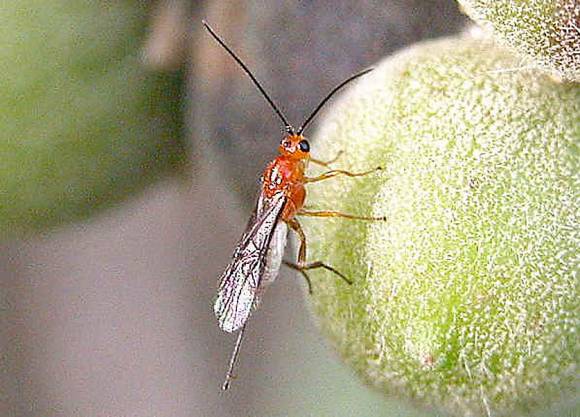 De cuerpo rojizo, ojos negros y largas antenas, así es el nuevo enemigo de la mosca de los frutos: la avispa Diachasmimorpha longicaudata.