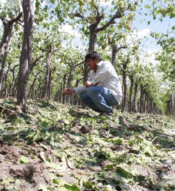 Los 15 minutos en los que la piedra golpeó la parte Noreste de Caucete fueron suficientes para causar un verdadero desastre que, según relevó el municipio, afectó a unos 50 productores que disponen de unas 600 hectáreas. Si bien el granizo alcanzó a Las Talas, Control Forestal y Los Médanos, el blanco más dañino se ubicó en Pozo de los Algarrobos, un pequeño distrito que está atestado de fincas con uvas. ‘No le miento si le digo que las piedras tenían el tamaño de una ciruela.