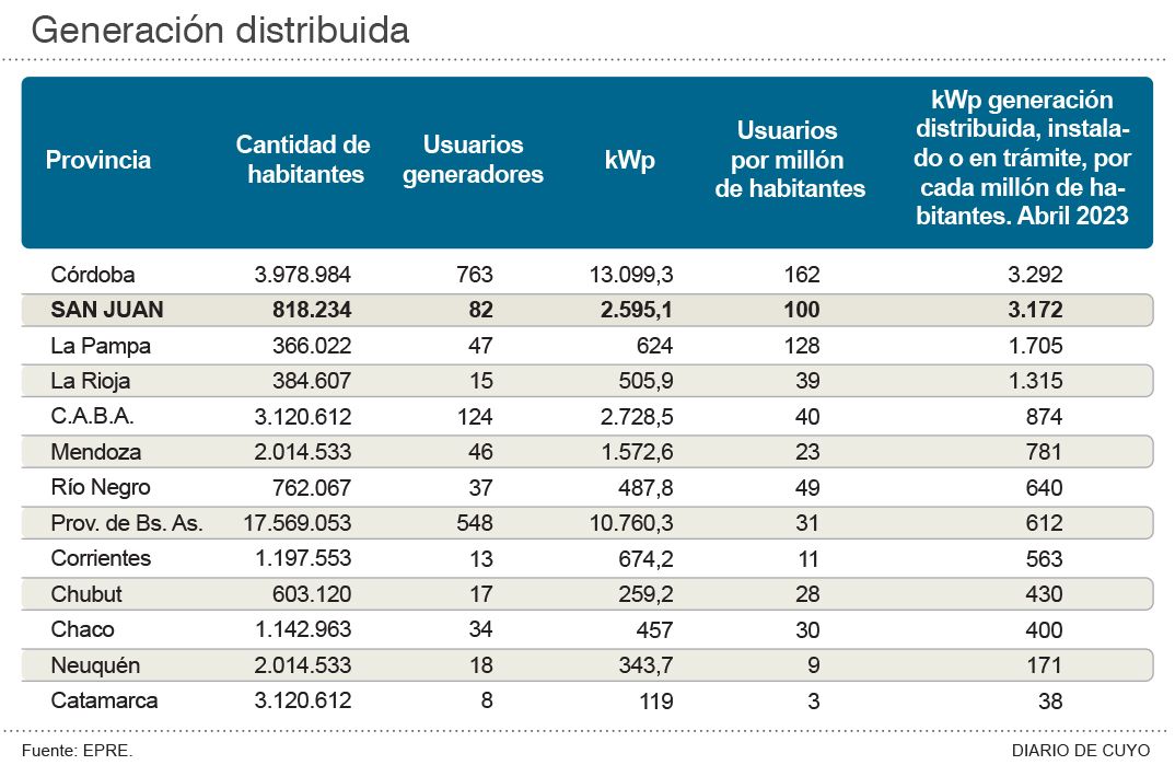En la actualidad, en la provincia hay 82 proyectos de generación distribuida. Se reparten entre comercios e industrias (56%), sistemas de riego (23%) y residencias familiares (21%).