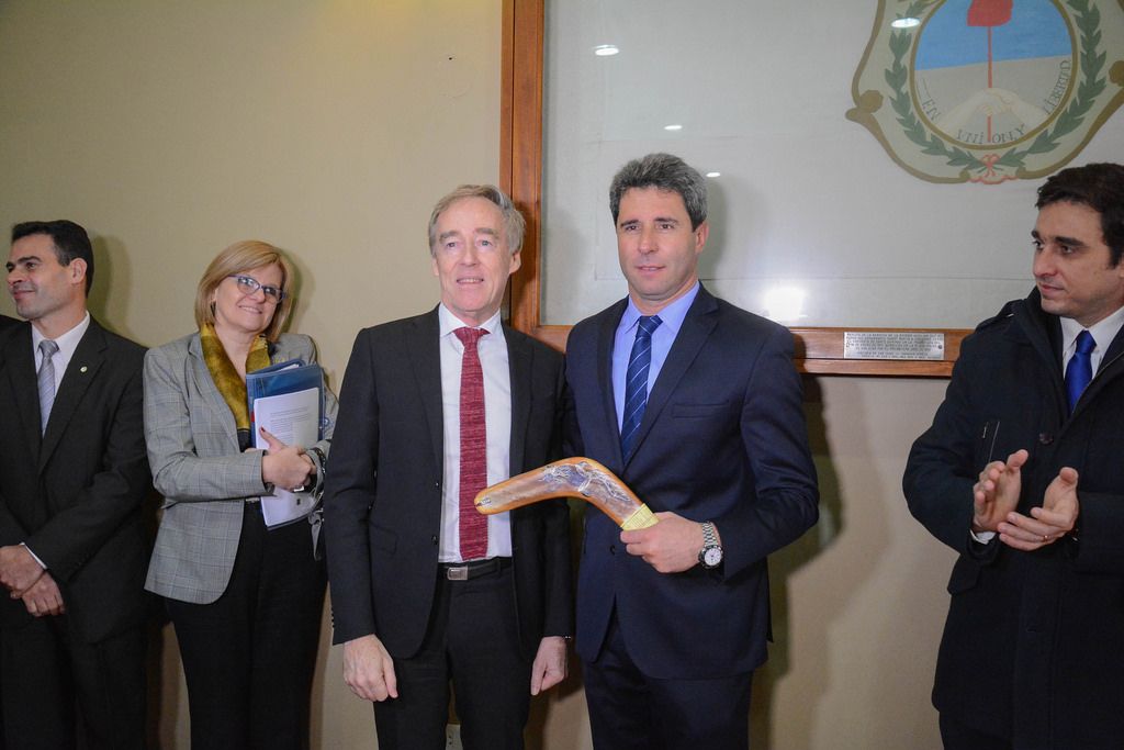 Uñac con embajador australiano: relación con “mucho potencial” y un boomerang de regalo